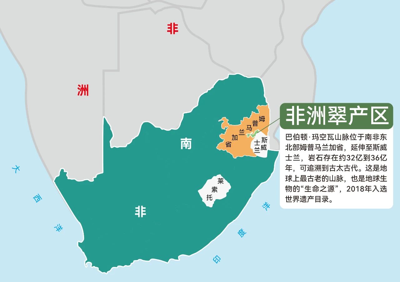结论一:非洲翠就是独龙玉,最早发现于云南怒江,现主要来源于非洲南部的巴伯顿·玛空瓦山脉。