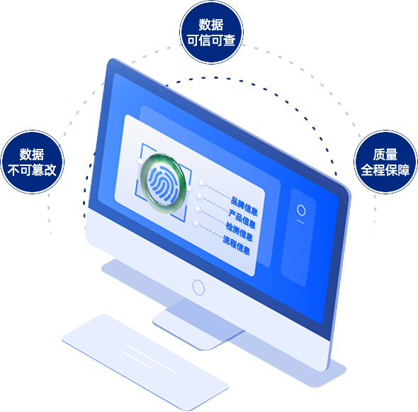 通过“一物一码”标识,将品牌信息、送检信息、检测全流程信息赋码写链。